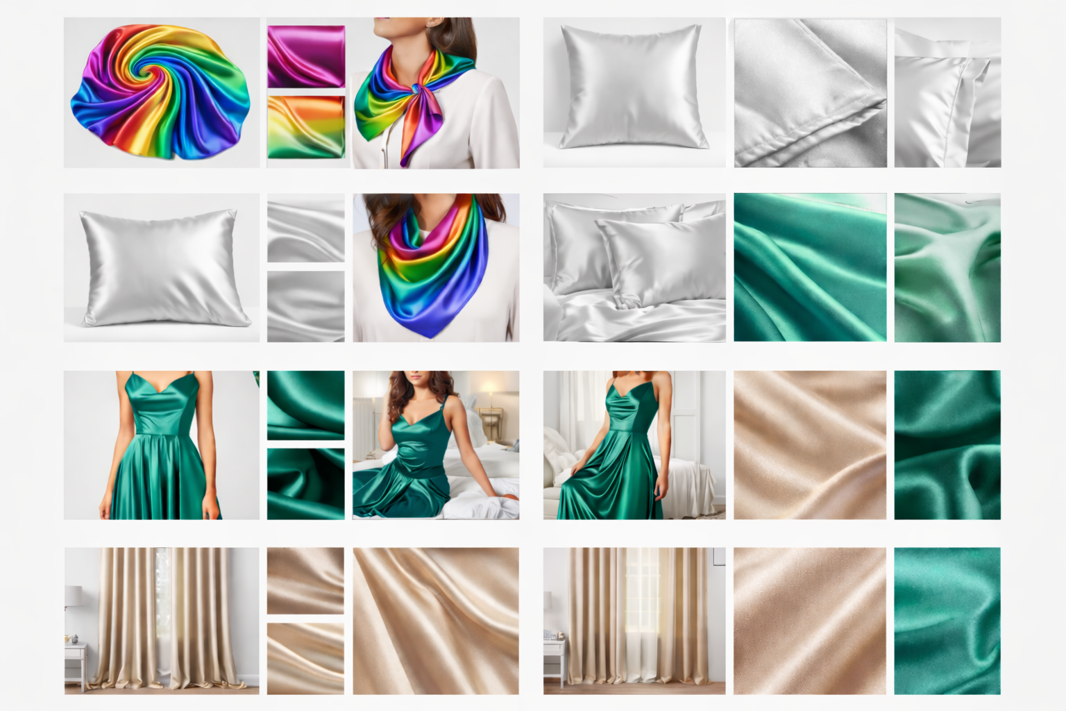 Polyester Saten kumaş özellikleri %100 polyester, 150 cm en, 100 gr/m2 ve her bir kumaş topu 100 metre şeklinde olup saten kumaş bayrak, elbise, kadın giyim, mendil, düğün-kına vb. özel kıyafet ve malzeme yapımı, dekoratif mekan süsleme, ev tekstili gibi tekstilin birçok alanında kullanıma uygun dijital baskı ile istenilen tasarımda desenli kumaş yapımına elverişli bir kumaş çeşididir.
